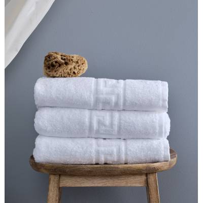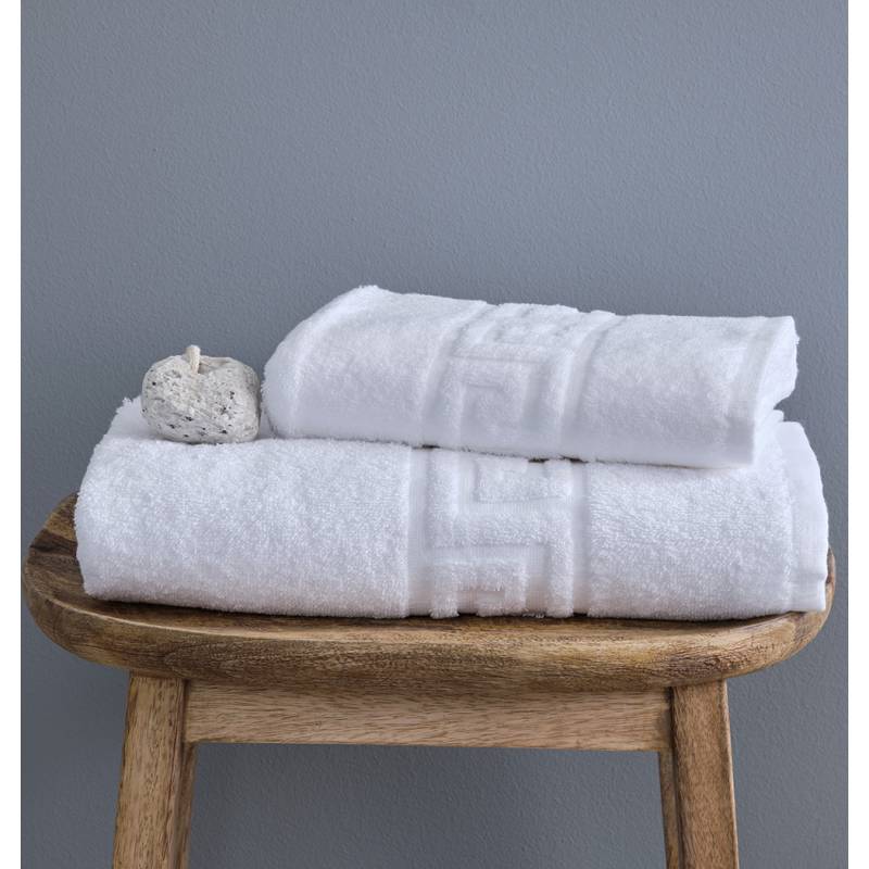 2610 340525Βαμβακερή υπέρλευκη Πετσέτα μονόκλωνη πενιέ, με ζακάρ Μαίανδρο στη μπορντούρα. Απαλή, απορροφητική, υποαλλεργική με ειδική επεξεργασία για εύκολο στέγνωμα. Πλαϊνό, διπλό γάζωμα για αντοχή κι ασφάλεια στα συχνά πλυσίματα. Αποτελεί διαχρονική & σταθερή επιλογή των πελατών μας.