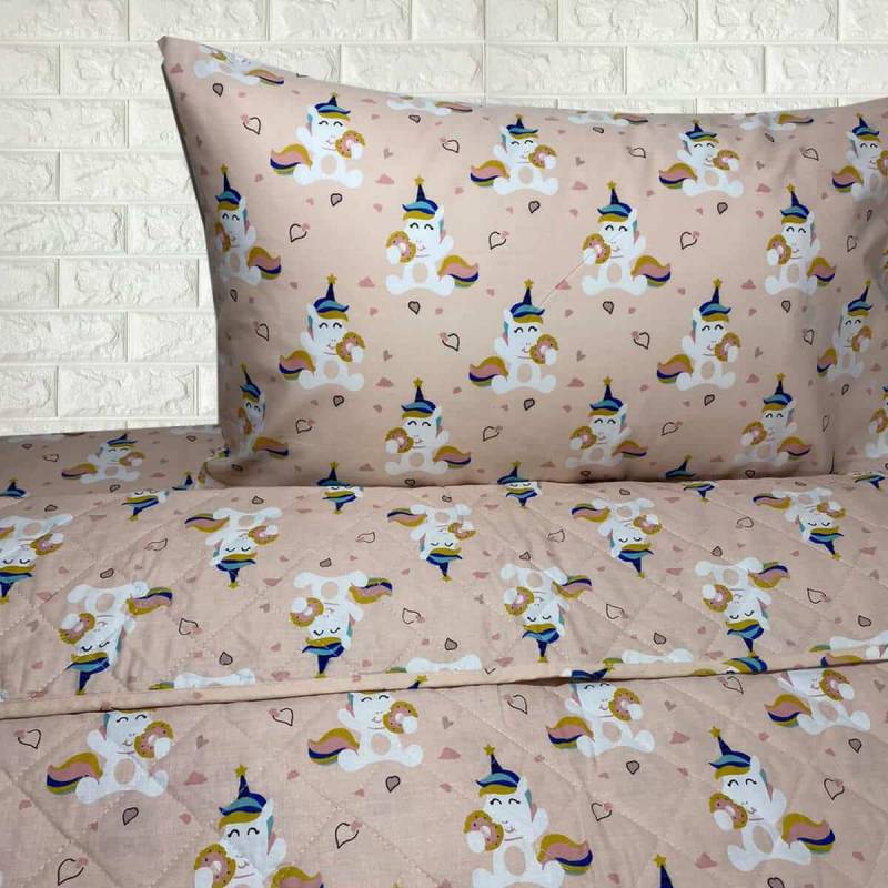 Τα παιδικά σεντόνια με θέμα τα unicorn donuts προσφέρουν έναν παιχνιδιάρικο και χαρούμενο σχεδιασμό που συνδυάζει το μαγικό στοιχείο των μονόκερων με τη γλυκιά αίσθηση των ντόνατς.